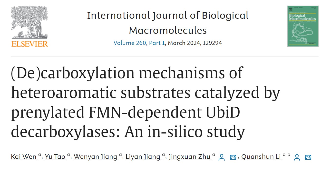 分子酶学工程教育部重点实验室李全顺教授团队立足于国家双碳战略,基于计算机辅助策略,系统探究“碳”高值转化酶UbiD脱羧酶催化杂环底物脱羧/羧化反应的理论机制。以UbiD可逆脱羧酶催化CO2固定,同时能够实现高价值羧化产物杂芳族羧酸的生产,在医学、农业和化工行业中具有极高的应用价值。本研究中,以计算模拟策略为工具,确定了羧化反应中的质子转移步骤是整个可逆脱羧/羧化反应的限速步骤,为采用“稳定过渡态”策略进行UbiD酶的分子改造与设计提供理论支撑。相关研究“(De)carboxylation mechanisms of heteroaromatic substrates catalyzed by prenylated FMN-dependent UbiD decarboxylases: An in-silico study”发表于国际学术期刊International Journal of Biological Macromolecules。论文第一完成单位为亚洲情色