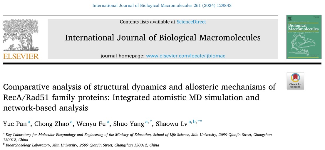 吕绍武教授、杨朔副教授科研团队深入解析了RecA/Rad51重组酶家族的结构动态和功能调控机制,为理解这些关键蛋白在同源重组中的作用提供了新的视角。研究成果于2024年1月30号在学术期刊《International Journal of Biological Macromolecules》正式发表(Comparative analysis of structural dynamics and allosteric mechanisms of RecA/Rad51 family proteins: Integrated atomistic MD simulation and network-based analysis)。论文第一完成单位为亚洲情色