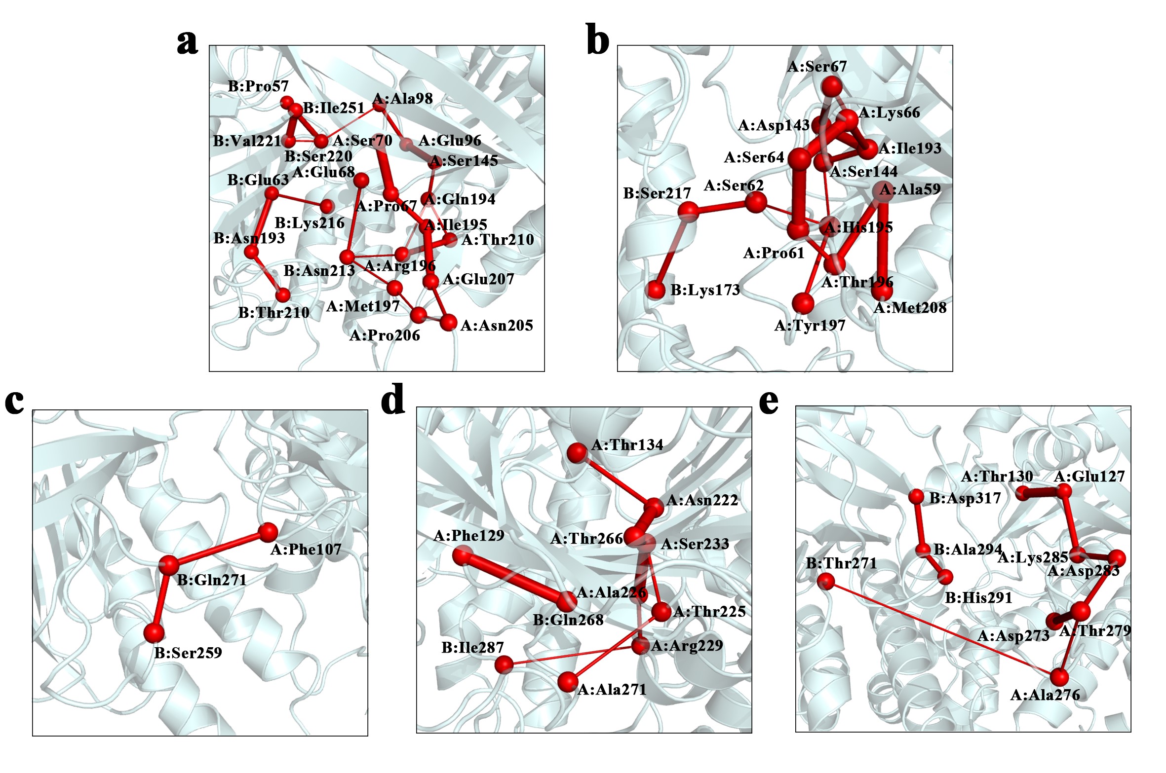 图3:ATP结合位点与DNA结合位点之间的通讯路径。