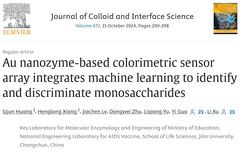 分子酶学工程教育部重点实验室徐力教授、郭轶教授团队报道了基于金纳米酶比色传感器阵列集成机器学习识别和区分单糖的方法。由于不同的单糖表现出不同的氧化还原特性,而金纳米酶可以应用O2、ABTS+•或[Ag(NH3)2]+作为电子受体,以不同的速度催化不同的单糖氧化,并引起不同的显色反应。以此建立的传感器阵列可以产生交叉响应信号,所收集的信号通过线性判别分析(LDA)和层次聚类分析(HCA)来实现不同的单糖或其混合物的区分。此外,可以应用基于传感器阵列的神经网络回归模型同时预测样品中不同单糖浓度。研究论文“Au nanozyme-based colorimetric sensor array integrates machine learning to identify and discriminate monosaccharides”发表在国际学术期刊《Journal of Colloid and Interface Science》上。论文第一完成单位为亚洲情色