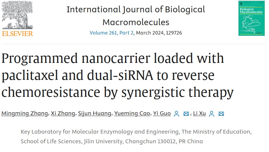 此外,在纳米药物载体方面,为增加PTX的水溶性以及缓解肿瘤耐药性,徐力郭轶教授团队以甲基丙烯酸羟丙酯(HPMA)作为亲水外壳,制备得到一种具有良好安全性和稳定性的阳离子共嵌段聚合物PPEMMRA,实现了多种耐药蛋白siRNA和PTX的共载和分步释放,在体内可以成功地将药物递送到肿瘤组织中。多种siRNA和PTX联用,可以抑制肿瘤细胞迁移,促进活性氧(ROS)释放,诱导肿瘤细胞凋亡,在耐药肿瘤细胞中具有强烈的抗肿瘤效果,进而逆转耐药性发生。研究论文“Programmed nanocarrier loaded with paclitaxel and dual-siRNA to reverse chemoresistance by synergistic therapy”发表在国际学术期刊《International Journal of Biological Macromolecules》上。论文第一完成单位为亚洲情色