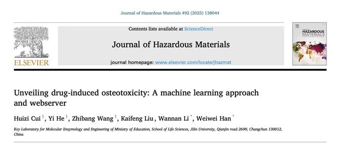 韩葳葳教授团队于《Journal of Hazardous Materials》发表研究成果(J. Hazard. Mater. 2025, 492: 138044),提出BoneToxPD在线预测平台,实现药物骨毒性的高准确度预测。