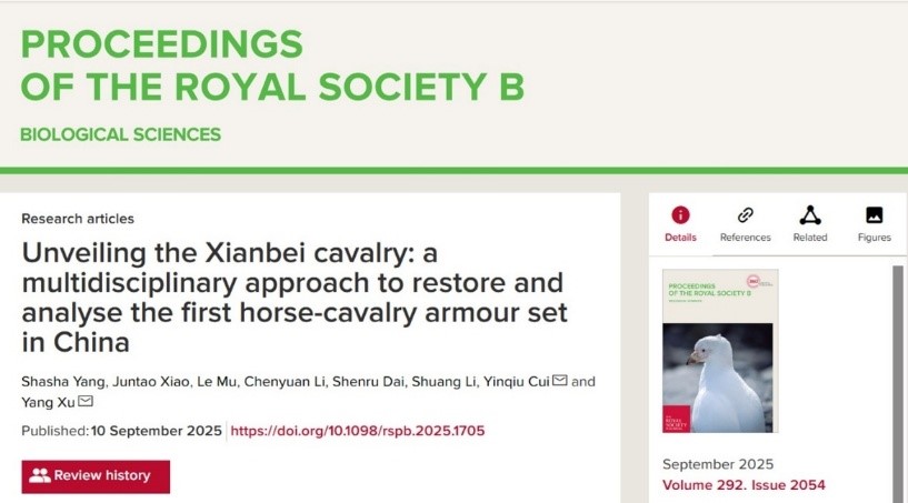 该研究成果以Unveiling the Xianbei cavalry: a multidisciplinary approach to restore and analyse the first horse-cavalry armour set in China为题,于2025年9月10日在国际学术期刊Proceedings of the Royal Society B: Biological Sciences上正式发表。该论文第一完成单位为亚洲情色