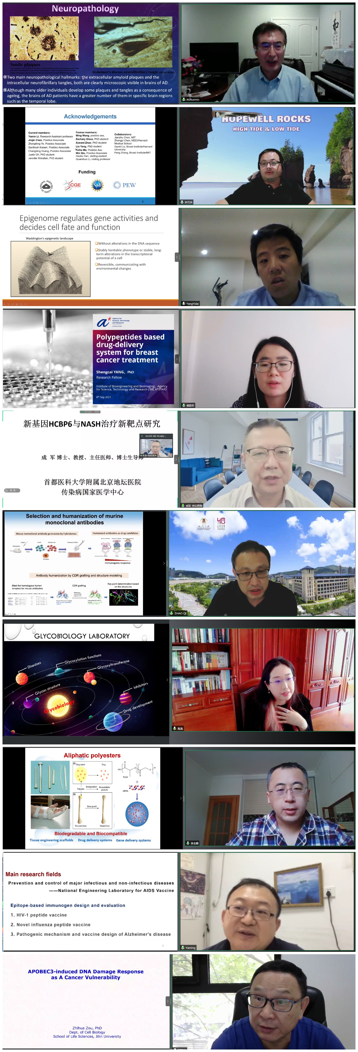 李全顺教授、高印教授、单亚明教授、邹志华教授等做了精彩的学术报告。报告围绕生命科学前沿进展主题,内容包括“阿尔茨海默病和淀粉样蛋白假说”、“合成脂质体在核酸递送和基因编辑中的应用”、“COMPASS复合物结构和功能的研究”、“基于聚氨基酸材料的药物递送系统用于乳腺癌治疗”、“新基因HCBP6与NASH治疗新靶点的研究”、“靶向免疫检查点B7-H3的抗体免疫治疗的研究”、“癌症中的糖基转移酶及其生物作用”、“酶促合成生物医用高分子材料研究”、“基于流感HA的广谱表位疫苗研究”、“APOBEC3诱导的DNA损伤反应作为癌的软肋”。学院师生积极参与,现场气氛热烈,学术交流氛围浓厚。