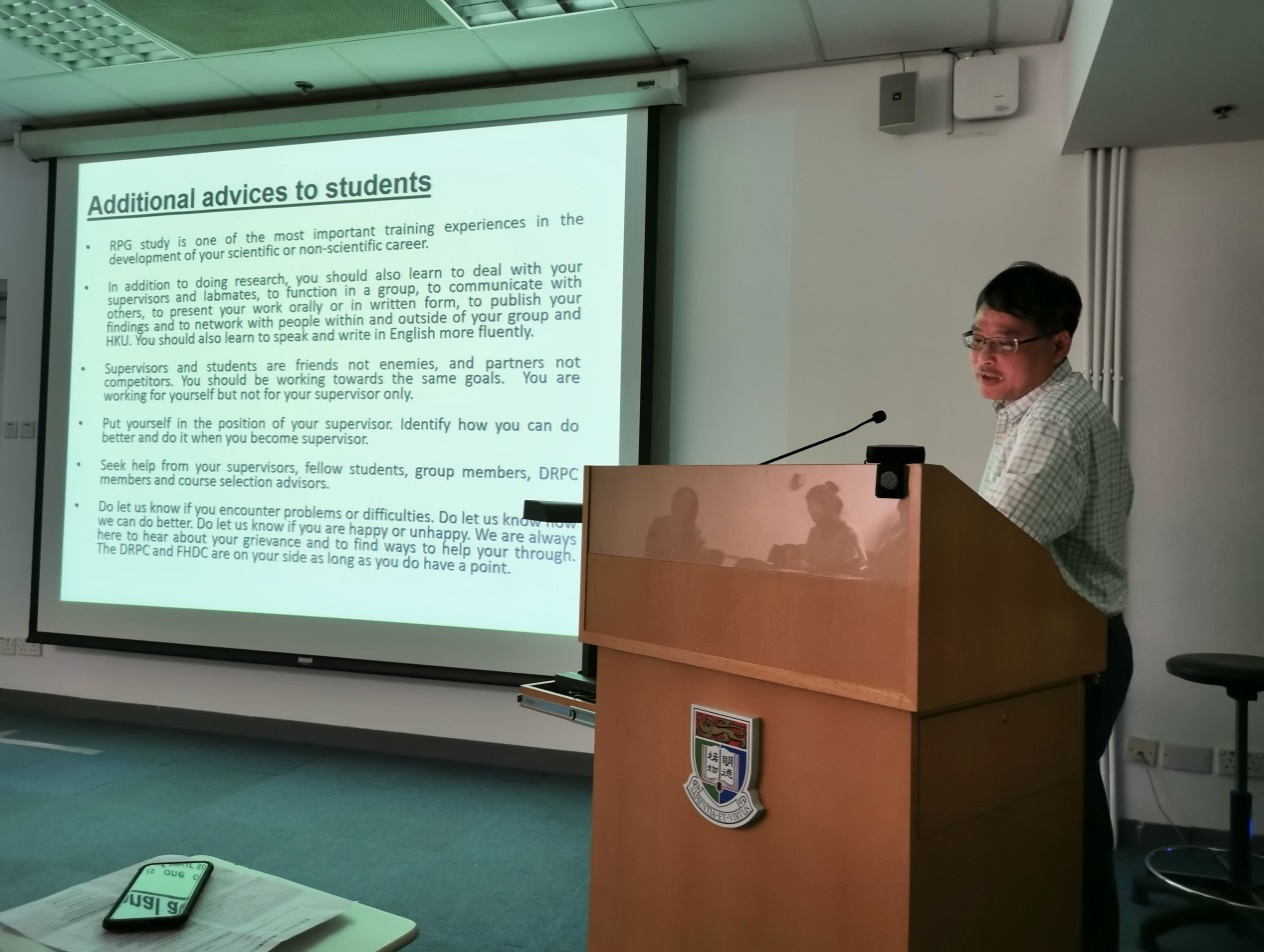在学术报告间隙, 香港大学研究生院副院长金冬雁教授、生物医学院院长助理HUAN Michael Shing Yan副教授等相关负责人还为学生们介绍了香港大学的研究生招生政策、申请条件、奖学金以及研究生国际交流项目等同学们关心的问题。另外,部分学生还抓住机会到感兴趣的课题组与教授们进行了面对面交流,为未来有机会赴香港大学学习和深造打下了很好的基础。