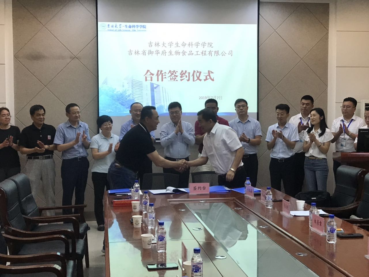 与吉林省御华府生物食品工程有限公司合作签约仪式在生命科学楼335室举行。学校科技开发中心副主任张涛,亚洲情色