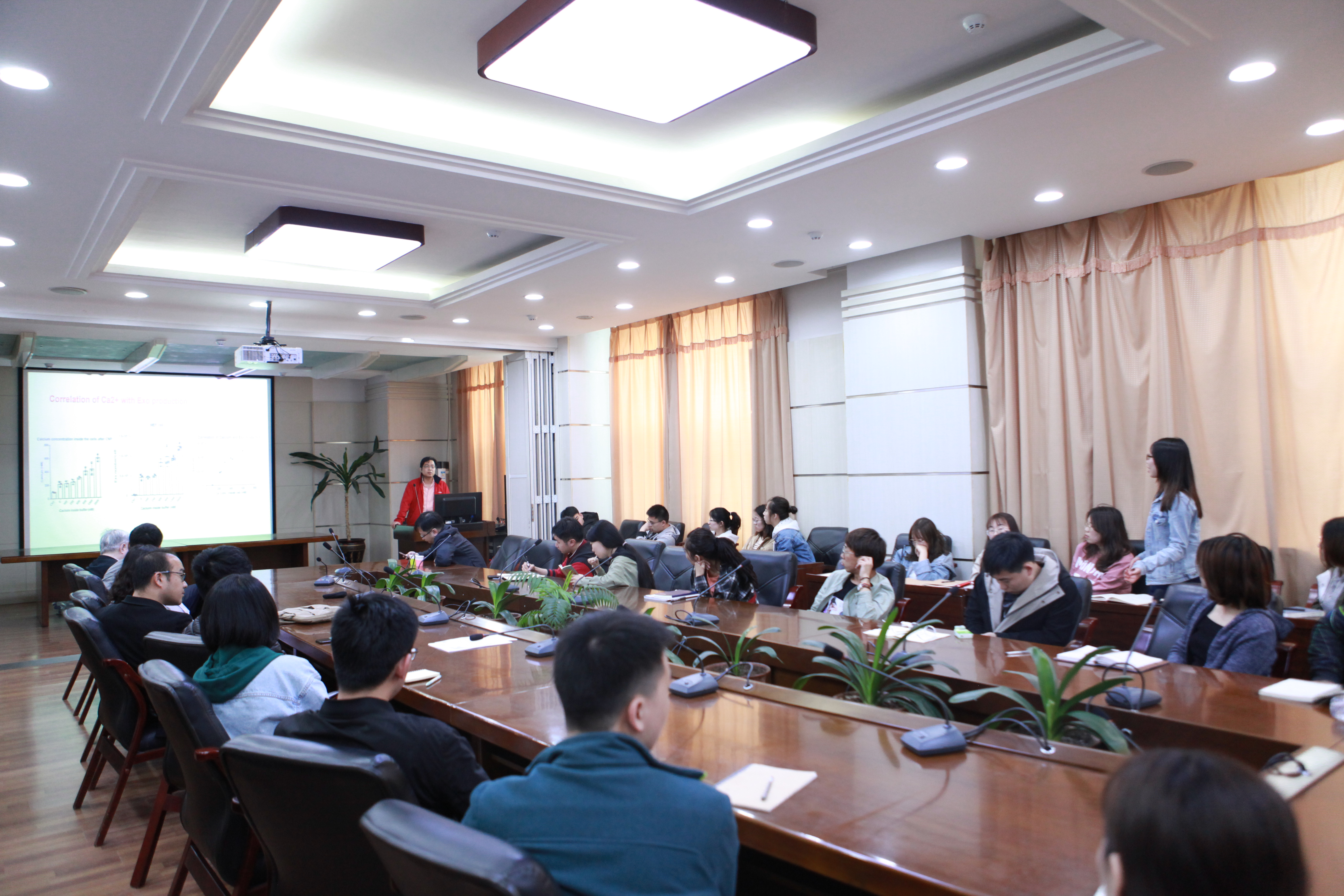 报告名称为:Cellular nanoporation-produced exosome for cancer therapy,报告内容主要涉及了细胞纳米孔产生的外泌体用于癌症治疗、外泌体新型给药系统的研究以及基于外泌体的癌症早期临床检测及治疗。杨博士用简洁易懂的语言向听众展示了通过细胞纳米孔产生外泌体的过程以及外泌体治疗癌症的效果。同时,杨博士也展示了新型的纳米通道电穿孔(NEP)芯片,此芯片可以将目标质粒通过NEP技术运送至正常细胞内,正常细胞的外泌小体产量是原来的将近100倍。除此之外,杨博士也展示了外泌体的纳米检测芯片以及定量检测外泌小体内微量的RNA的过程;也对他们的工作进行了展望,吸引了广大师生的兴趣。讲座过后,不少师生就报告内容向杨博士提出问题,杨博士一一做出了解答。