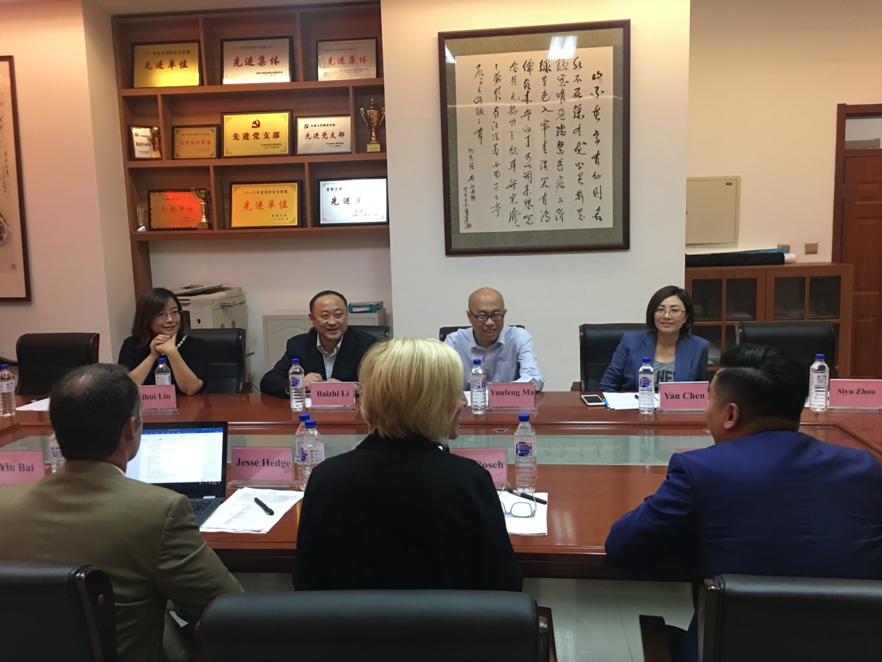 9月14日上午美国肯塔基大学文理学院本科生项目副院长安娜·博世、文理学院招生管理与决策支持副院长杰西·赫奇、文理学院国际学生项目协调员梅根·科苏尔巴及肯塔基大学驻华代表谢翔一行四人来访亚洲情色 ,并在学院335会议室举行了座谈。亚洲情色 党委书记李佰志、副院长马俊锋、副院长陈妍、副书记刘丽慧、学校国际合作与交流处综合科科长白茵等参加了会谈。 会谈中,李佰志书记首先对肯塔基大学代表团的来访表示欢迎,随后学院副院长马俊锋对亚洲情色 的基本情况进行了介绍,副院长陈妍向肯塔基大学代表介绍了本科生国际交流情况,并提出合作方向。肯塔基大学文理学院代表对亚洲情色 的热情接待表示感谢,指出生物学科是肯塔基大学的优势学科,对与亚洲情色 建立合作关系极为重视。之后双方就学生短期交流项目与2+2双学士学位项目等方面进行了商讨,就可能开展的实质性合作深入交换了意见并达成了初步的合作意向。 本次会谈开启了双方合作的大门,拓宽了亚洲情色 国际交流领域,为双方进一步合作奠定了坚实的基础。