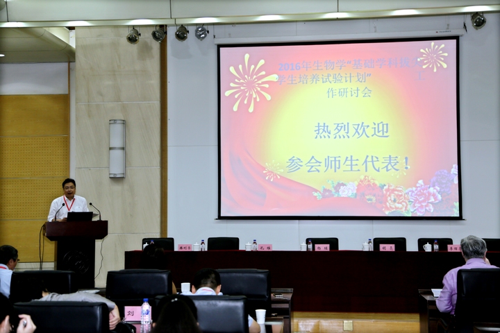 成功召开。来自北京大学、清华大学、中国科技大学、复旦大学、上海交通大学等全国16所实施生物学科“拔尖计划”高校的学科负责人和师生代表近百余人参加了本次会议。