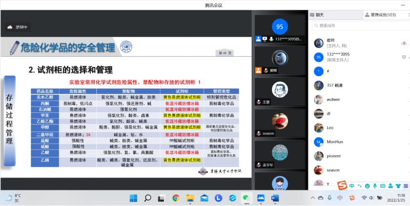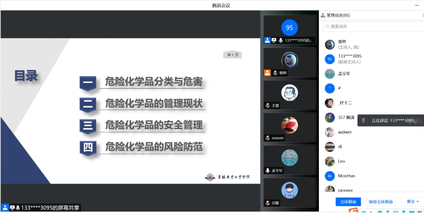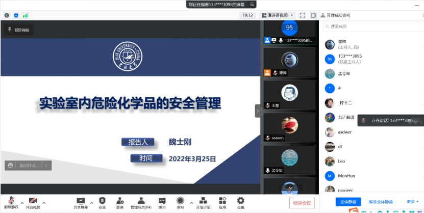 为认真学习贯彻习近平总书记在3月17日中共中央政治局常委会上的重要讲话精神,全面落实孙春兰副总理来校调研时的指示精神,贯彻落实教育部党组和吉林省委省政府、长春市委市政府决策部署,结合当前疫情形势,学院按照学校疫情防控工作总体要求,进一步加强实验室安全教育引导工作,有针对性的强化学院师生危化品存放管理能力,进一步加强特殊时期学院实验室安全管理,持续加强对师生的线上安全教育培训。