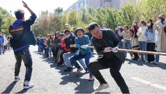 比赛由学院国家级教学名师滕利荣教授担任裁判员,随着他的一声哨响,比赛正式开始。但见比赛场上,参赛队员们奋勇争先、斗志昂扬,拉拉队员激情呐喊、活力四射。全院教职工以极大的热情参与到了此次活动当中,一根长长的拔河绳凝聚了每一位参赛教职工的力量与信念,牵动着在场观众的热情与渴望。拔河是团体赛事,比赛中处处彰显着“团结就是力量”与队伍不服输的品格。人挨人,脚靠脚,咬紧的牙关,攥红的双手,无不透露出不屈的意志,一次次地发力、后移,一声声地呐喊、助威,激烈的角逐扣人心弦。