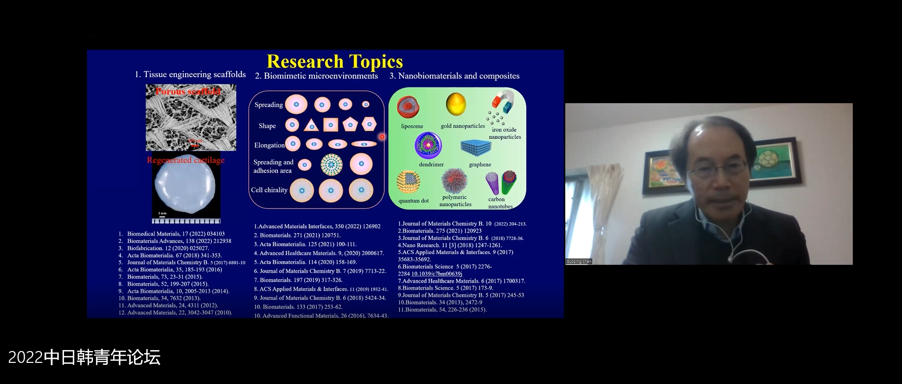 论坛围绕“生物医药与健康”和“生物医学工程和生物技术”议题,由来自韩国汉阳大学的Hyungshin Yim教授、Jae-Yeol Joo副教授、延世大学Na-Young Song 助理教授、韩国建国大学Jinhong Wie 助理教授、日本筑波大学陈国平教授、大阪大学吕玉泉副教授、日本横滨市立大学Yongchan Lee助理教授、日本兵库医科大学Hirosato Kanda助理教授、段韶琪博士后、德国马克斯普朗克生物物理研究所吴迪博士后、亚洲情色