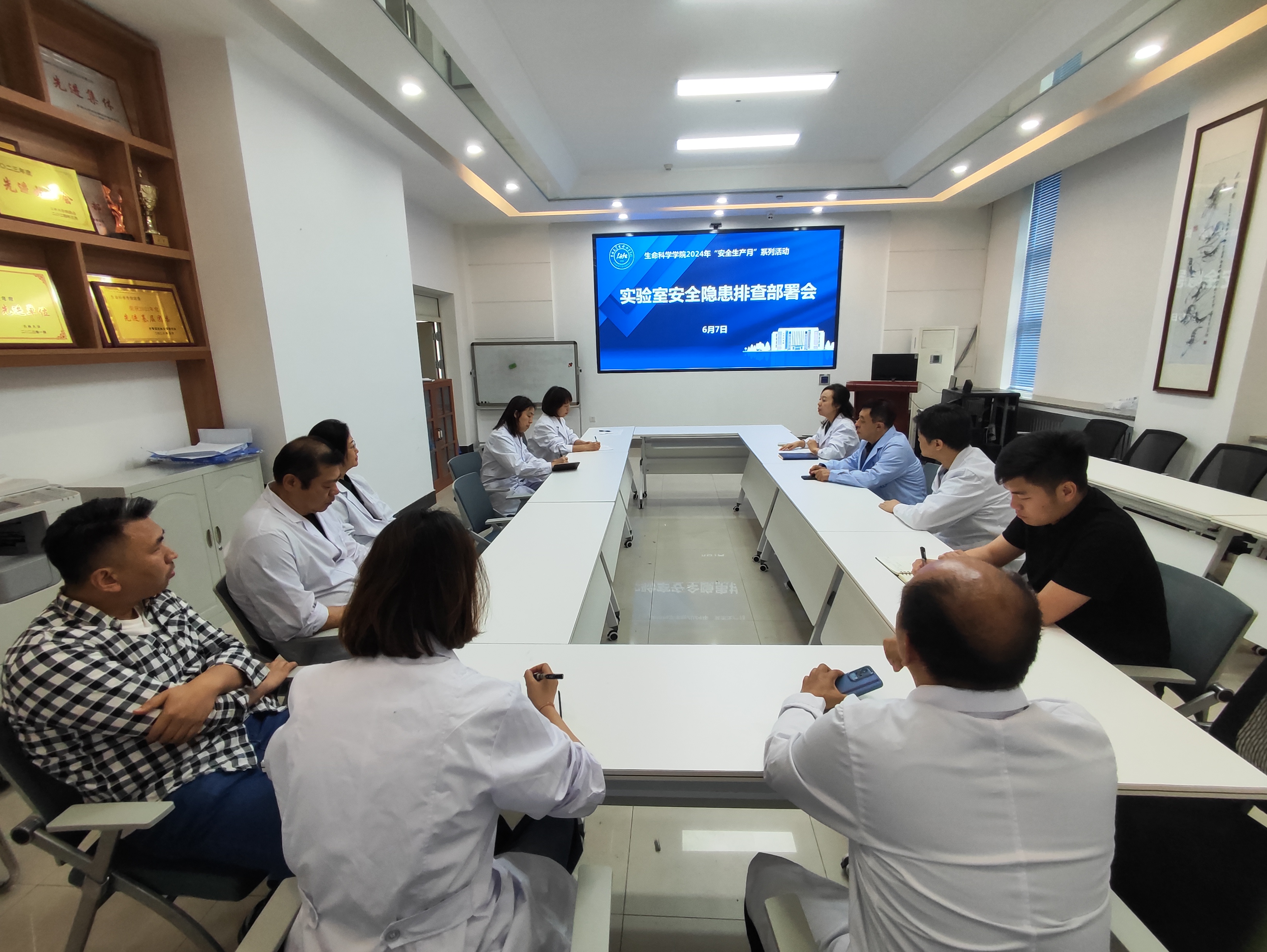 举办2024年“安全生产月”系列活动——实验室安全隐患排查部署会暨端午节前实验室安全检查工作,学院行政副院长郑琳和学院实验室安全管理工作小组成员参加了本次检查工作。部署会由郑琳主持。