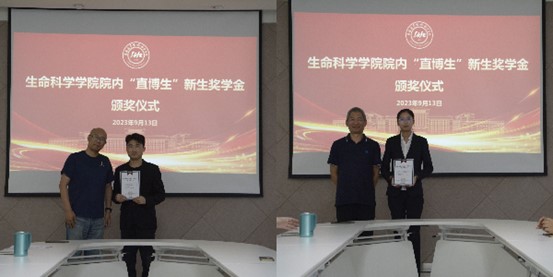 于生命科学楼408室举行第一届院内“直博生”新生奖学金颁奖仪式。院长于湘晖、党委副书记林相友、副院长崔银秋、副院长陈妍,研究生导师代表徐力、李桂英、高仁钧、于彬,研究生工作办公室工作人员和获奖新生参加颁奖仪式。颁奖仪式由副院长马俊锋主持。