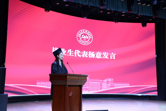 最后由于湘晖院长讲话,于院长代表学院向圆满完成学业、即将踏入人生新征程的全体本科毕业生表示祝贺。在临别之际,她叮嘱同学们要做到以下四点:一是在时代的背景下明确人生目标,将个人的成长成才融入于国内学科发展对于人才的迫切需求之中,融入于国家富强、民族复兴的发展进程之中。二是在生科血脉的赓续中传承科学精神,秉持追求真理、勇攀高峰的科学精神,勇于创新、严谨求实的学术风气,在科学前沿孜孜求索、不断、突破。三是在纷繁复杂中守住善的灵魂,用善良理解自己,尊重他人。四是在躬身践行中踩下“实”的脚印,做人要“实”,做事要“实”,做学问也要“实”。希望同学们走上社会、走上岗位后,要有理想情怀,肩负好实现个人价值和服务国家建设的双重责任,矢志追求更有高度、更有境界、更有品位的人生。