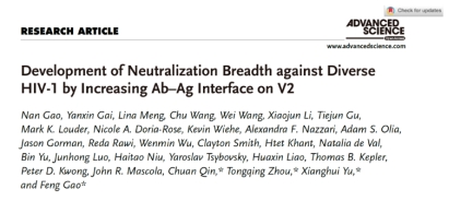 高峰教授、于湘晖教授科研团队针对目前已知报道感染时间最长的恒河猴动物模型作为研究对象,分析其体内诱导产生的广谱中和活性,该研究成果于2022年03月24日在学术期刊《Advanced Science》在线发表。