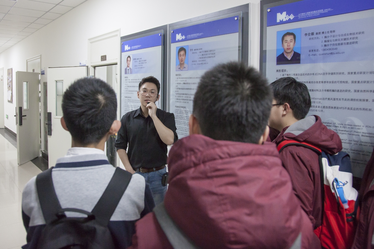 和相关专业知识,开拓视野、丰富学识。吴慧老师带领同学们参观了艾滋病疫苗国家工程实验室,详细介绍了电泳室、离心机室、细胞室等实验室的精密仪器,让大家对科学的严谨性有了更深刻的认识。韩浩博老师为同学们介绍了分子酶学工程教育部重点实验室的建设及科研进展,并设计演示实验供同学们参观学习。生物考古DNA实验室徐阳老师从同学们较为熟悉的DNA分子出发,由浅入深介绍了DNA提取和检测分析在分子法医学、分子考古等领域的应用。同学们认真聆听,兴趣盎然,在各位老师绘声绘色的讲解中了解生命的演变,探索科学的奥秘,在参观与实际操作中体验生命科学的乐趣。