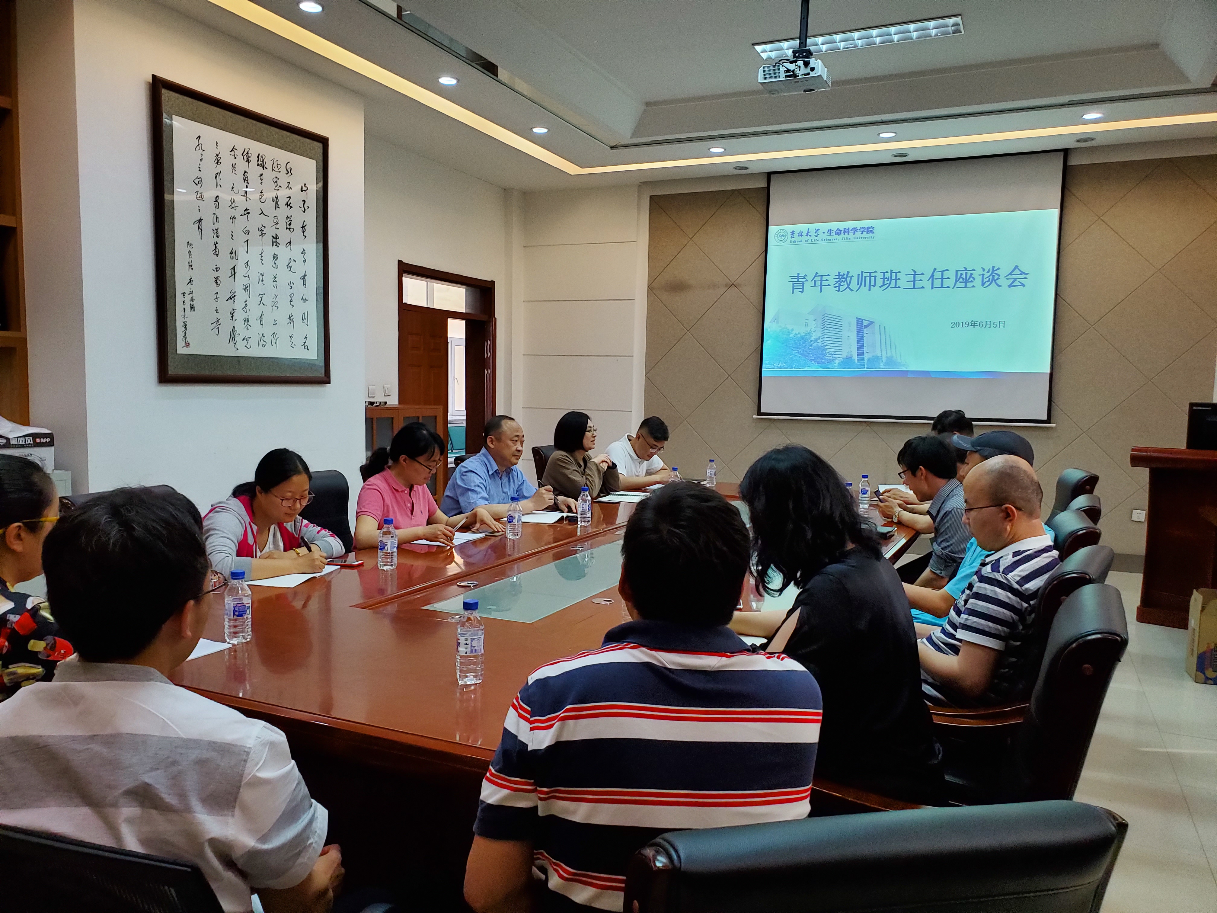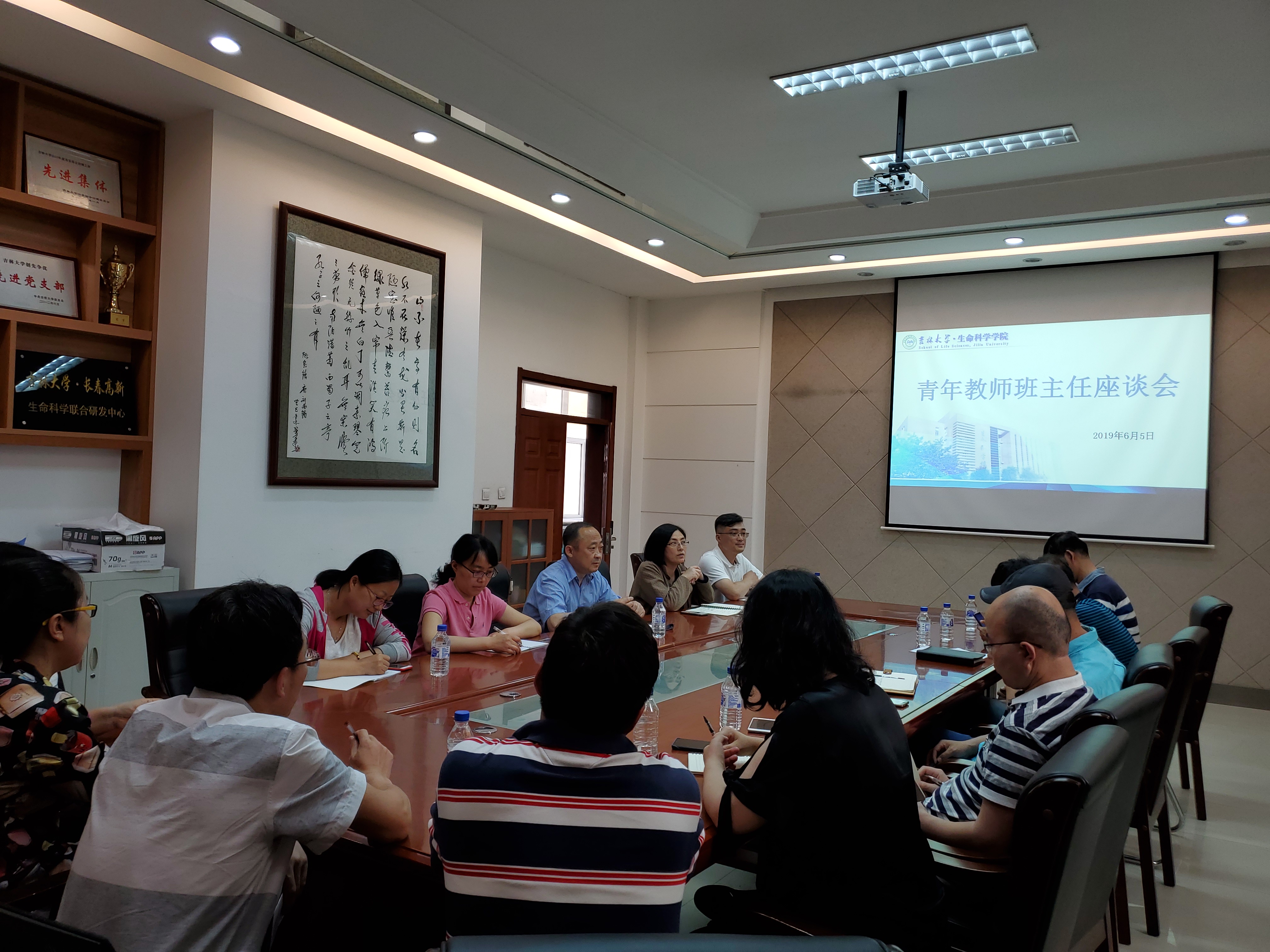 于2019年6月5日14:00在生命科学楼335室举行了青年教师班主任座谈会,学院党委书记李佰志、副院长陈妍、副书记崔帅,以及青年教师班主任参加了本次座谈会。