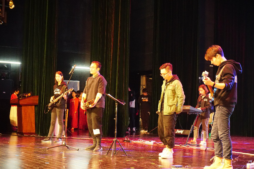 晚会前期,学院学生会文艺部的全体成员以及来自2018级的几十名演员兢兢业业,积极准备,在短短的四十多天时间内完成了节目的选定、筛选和完善。学院各部门分工合作,预热宣传、会场布置、道具准备、请柬分发,尽职尽责。