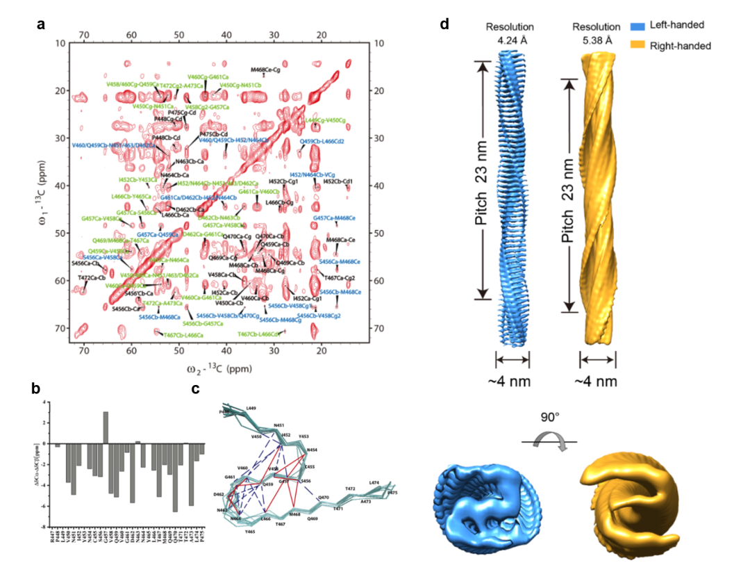 图1 RIPK3-CTD纤维的固态核磁及冷冻电镜结构解析