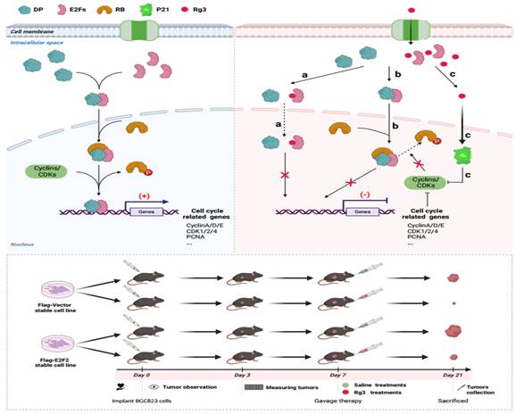 蔡勇教授/金景姬教授团队通过3D分子对接分析,预测Rg3可能与E2F1-3的二聚化结构域结合,并阻碍E2F-DP异源二聚体形成。进一步通过体外细胞热迁移分析(CETSA)、Rg3-PEGA pulldown结合蛋白质质谱分析,Luciferase activity以及体内小鼠成瘤实验等,证实Rg3通过阻断E2F-DP二聚体的形成,抑制细胞周期相关基因转录,进而诱导细胞周期停滞于G1/S期,促进细胞凋亡,最终抑制胃癌细胞增殖。该研究首次揭示Rg3通过破坏E2F-DP二聚体形成来发挥抗癌作用,为开发高E2F表达肿瘤治疗提供新方向。此项研究工作得到了国家自然科学基金、吉林省科技厅项目基金支持。论文第一完成单位为亚洲情色