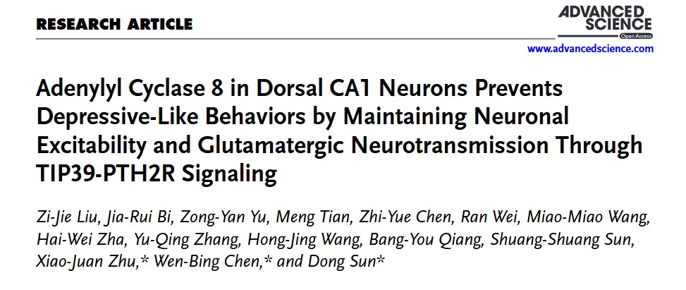 吉林大学生命科学学院艾滋病疫苗国家工程实验室孙栋副教授团队,联合东北师范大学生命科学学院朱筱娟教授团队、广州医科大学基础医学院陈文兵教授团队,在抑郁症发病机制研究领域取得重要突破。该研究通过整合行为学、高通量测序、电生理记录及钙信号光纤成像等技术手段,创新性提出背侧海马腺苷酸环化酶8(ADCY8)功能异常是抑郁症发生的关键风险因素,为抑郁症的病理机制阐释和靶向干预提供了全新的理论依据。研究成果于2025年12月12日在国际学术期刊《Advanced Science》上发表。