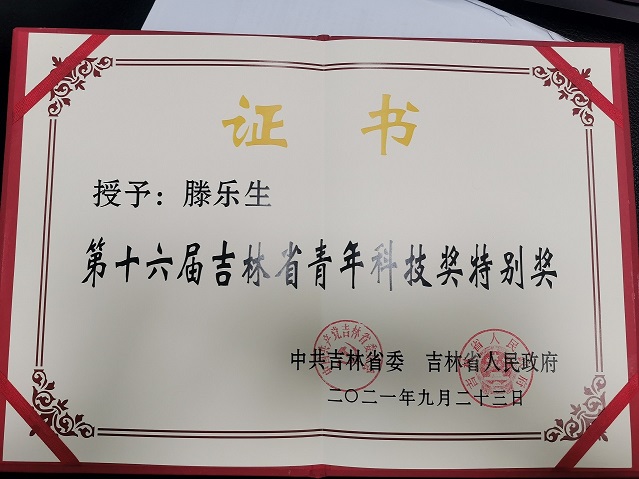 2021年11月23日,第三届吉林省青年科学家年会主场活动在长春举行。中共吉林省委组织部、吉林省人力资源和社会保障厅、吉林省财政厅、吉林省科学技术协会联合发布了关于表彰第十六届吉林省青年科技奖获奖者的决定,我院滕乐生教授喜获特别奖,由吉林省科协主席,吉林大学于吉红院士颁奖。据悉吉林省青年科技奖每两年评选一次,每次授予34人,其中特别奖仅授予3人。