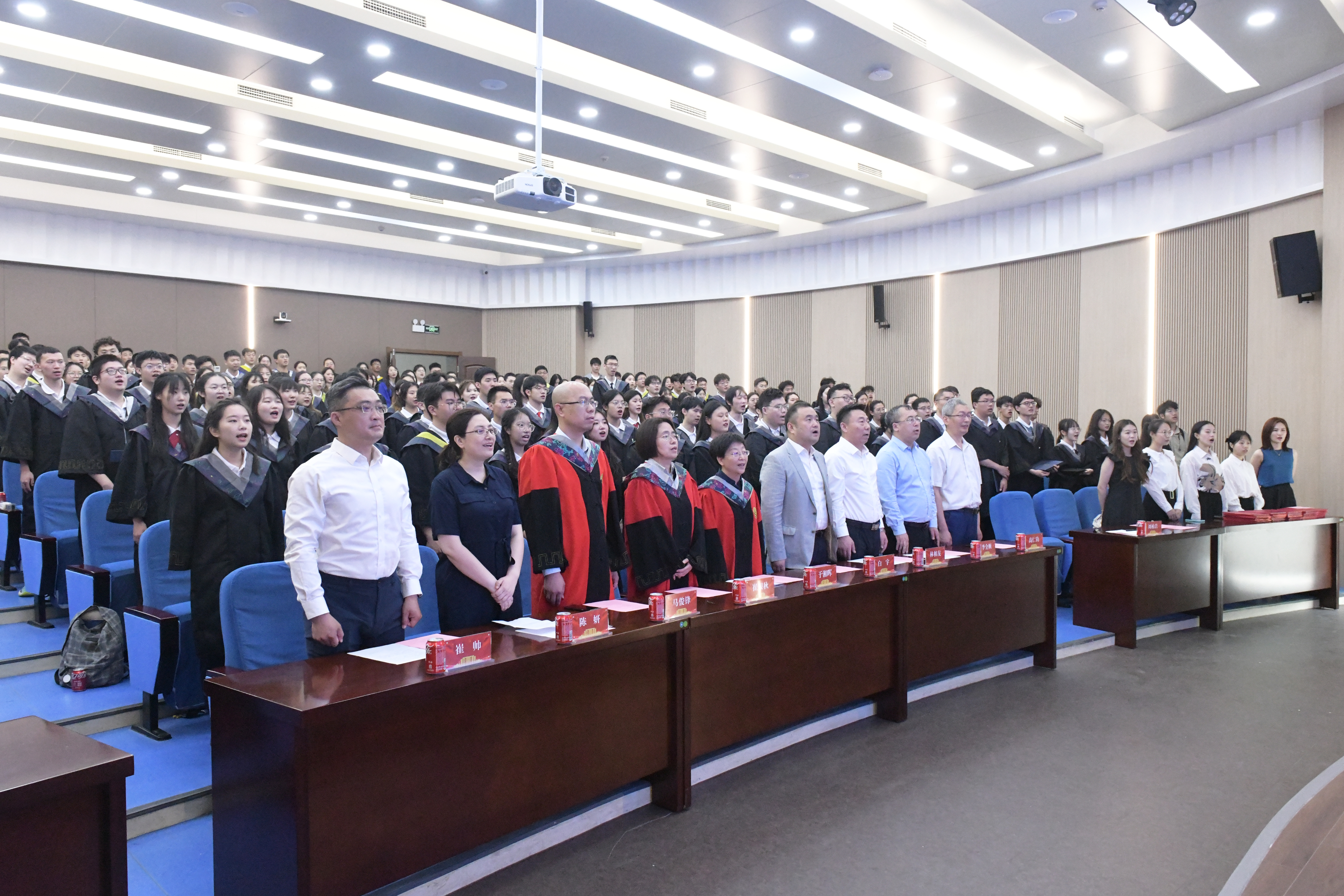 学位评定委员会主任委员马俊锋、副主任委员于湘晖、委员崔银秋共同为毕业生授予学位并合影留念。