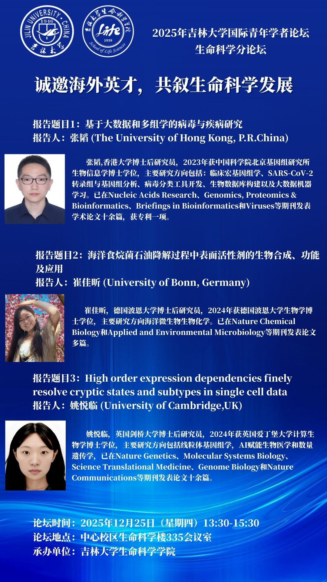 诚邀海外英才,共叙生命科学发展——吉林大学国际青年学者论坛生命科学分论坛