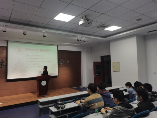 活动开始,主持人郭洧灼同学讲解了五四运动的事件起因、主要经过以及历史意义。她表示,作为中国近代史上的重大事件,五四运动具有“里程碑”意义。五四精神给落后的中国带来了文化思想的解放,也释放了人们埋藏已久的爱国热情。新时代的青年要继续发扬五四精神,以实现中华民族伟大复兴为己任,不辜负我们这个伟大的时代。