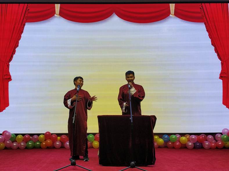 晚会分为上半场和下半场,中间穿插着抽奖等游戏互动环节,使整个晚会沉浸在师生同乐的欢畅气氛中。晚会充分展示了生科研究生的多才多艺,古典舞的优雅,爵士舞的热烈,在舞台上碰撞;吉他弹唱、歌曲串烧,时而轻松愉悦,时而慷慨激昂,再配上古筝、笛子的优雅舒扬,呈现给师生一场精彩的视听盛宴;精彩流畅的脱口秀、令人捧腹的相声表演,展示了生科人不仅具有动手实验能力,更有“嘴”上功夫;最后是五位班长带来的诗歌朗诵表演,把生科人对生科大家庭赤子之心呈现在大家面前。