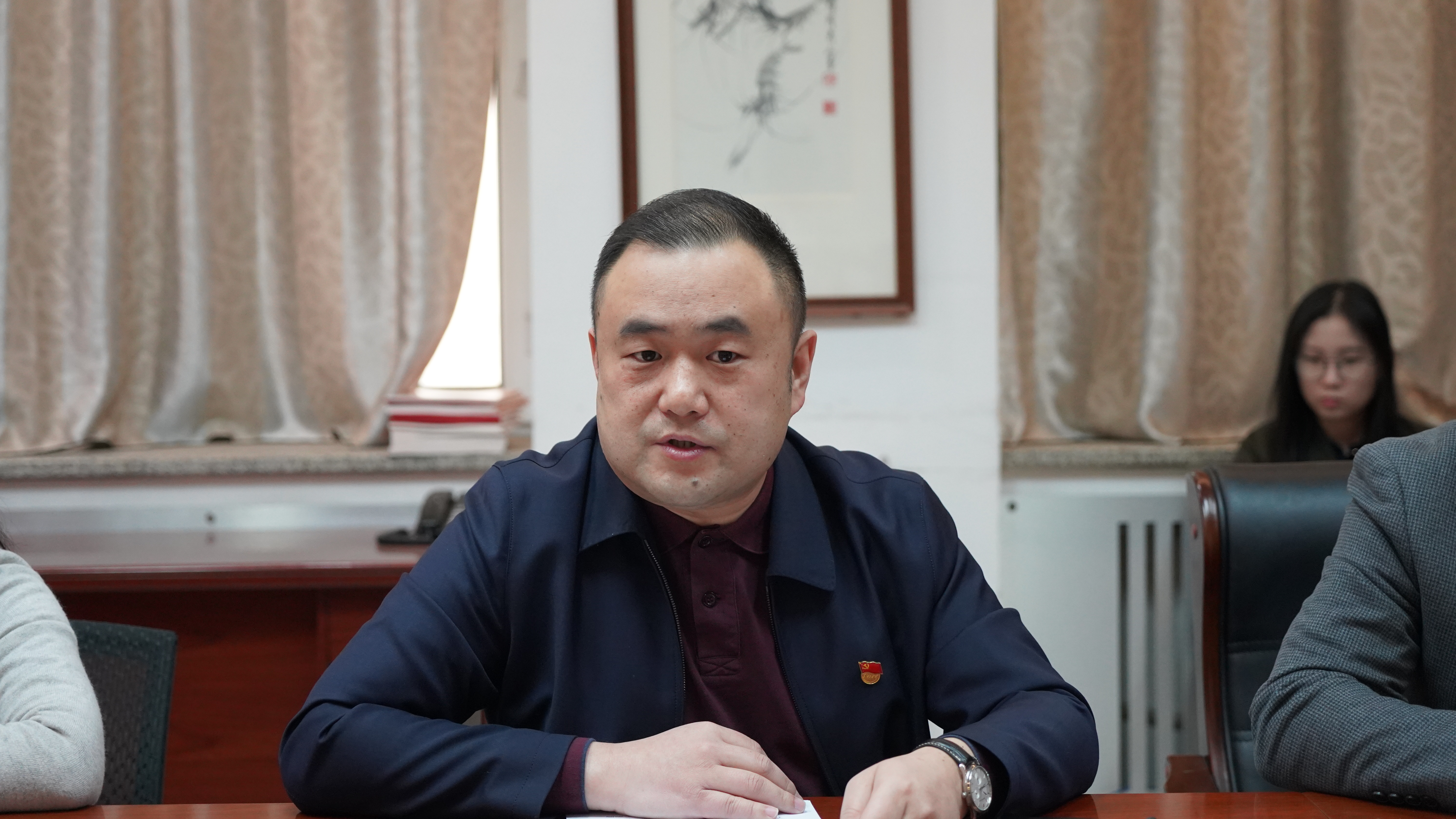会上,党委书记白宇传达学校党委关于学习贯彻习近平新时代中国特色社会主义思想主题教育动员大会精神,并就学院关于扎实推进主题教育的贯彻落实工作进行部署。